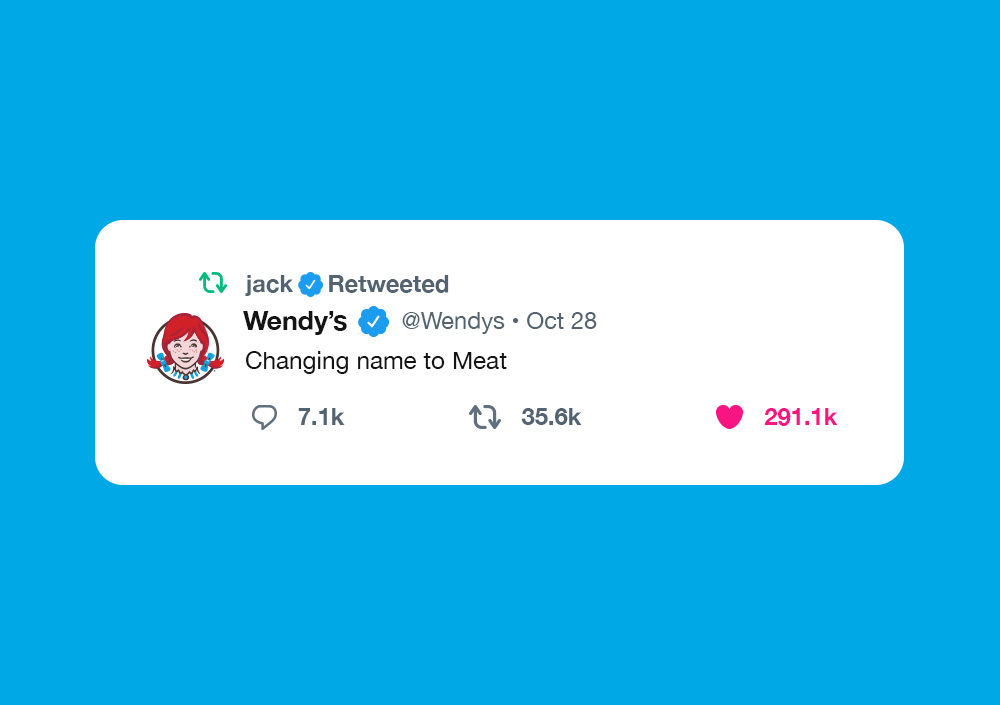Wendy’s, the No. 2 hamburger fast food restaurant in America, has become iconic for its brand voice, from “Where’s the beef?” on television in the 1980s to Twitter roasts of its competition today. While primarily focused on our core differentiator of fresh, never frozen beef and roasting the competition's use of the inferior frozen beef, Wendy’s social media has allowed the brand to go places that no other brand could. We’ve developed a cult following, established #NationalRoastDay as a national holiday and transformed Wendy’s into material for pop culture. We use social media to vault to the top of consumers’ minds in more unique and memorable ways than our competition, which matters when mealtime decisions are impulse decisions and the top-of-mind brand is the one that gets the visit.
